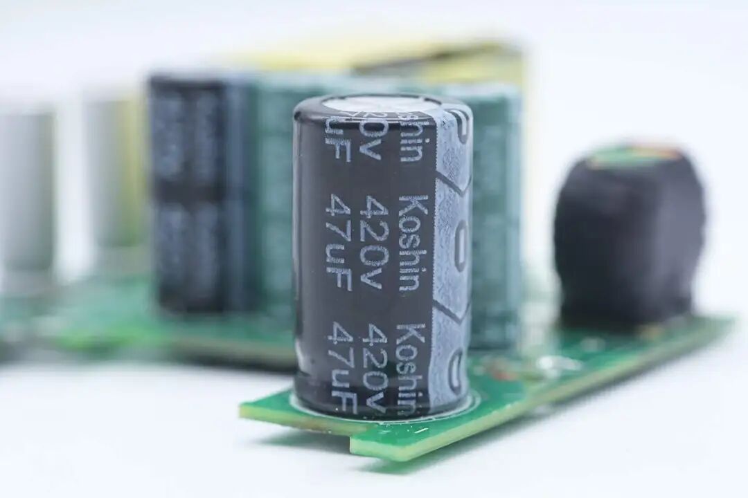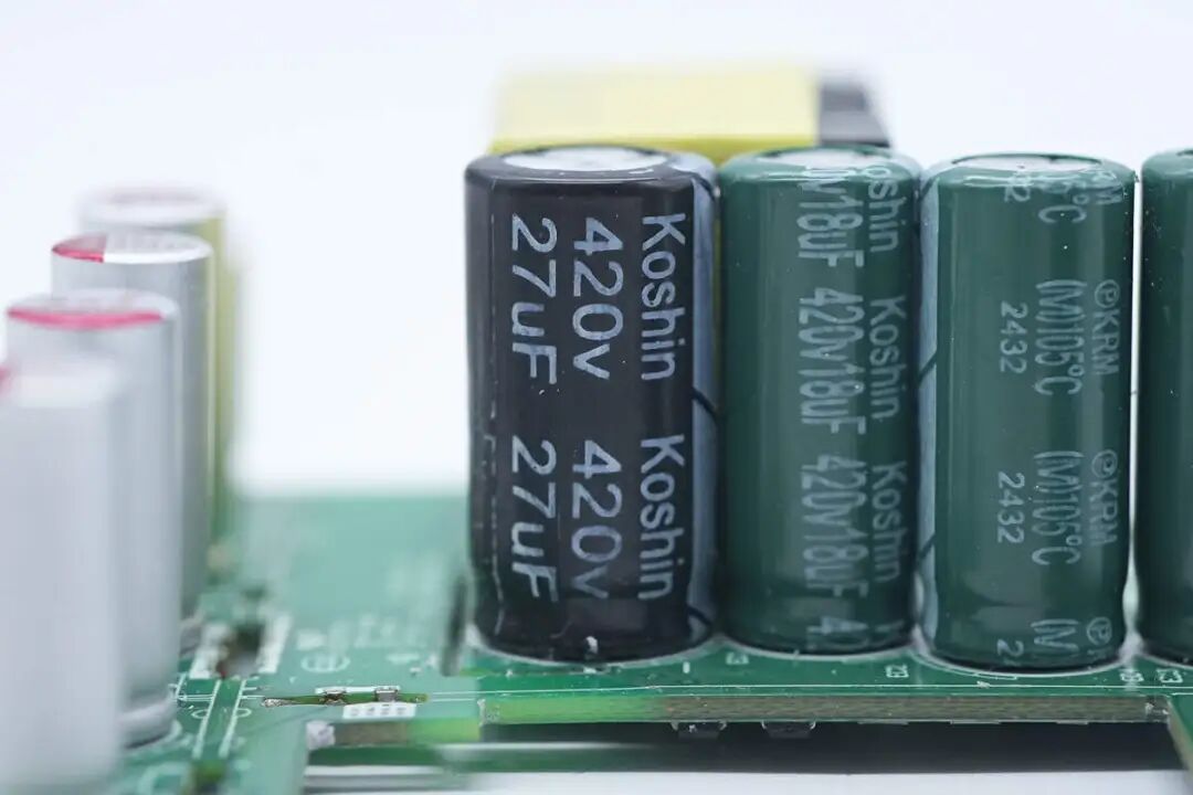 高壓濾波電解電容來自Koshin東佳,黑色的規(guī)格為420V47μF。