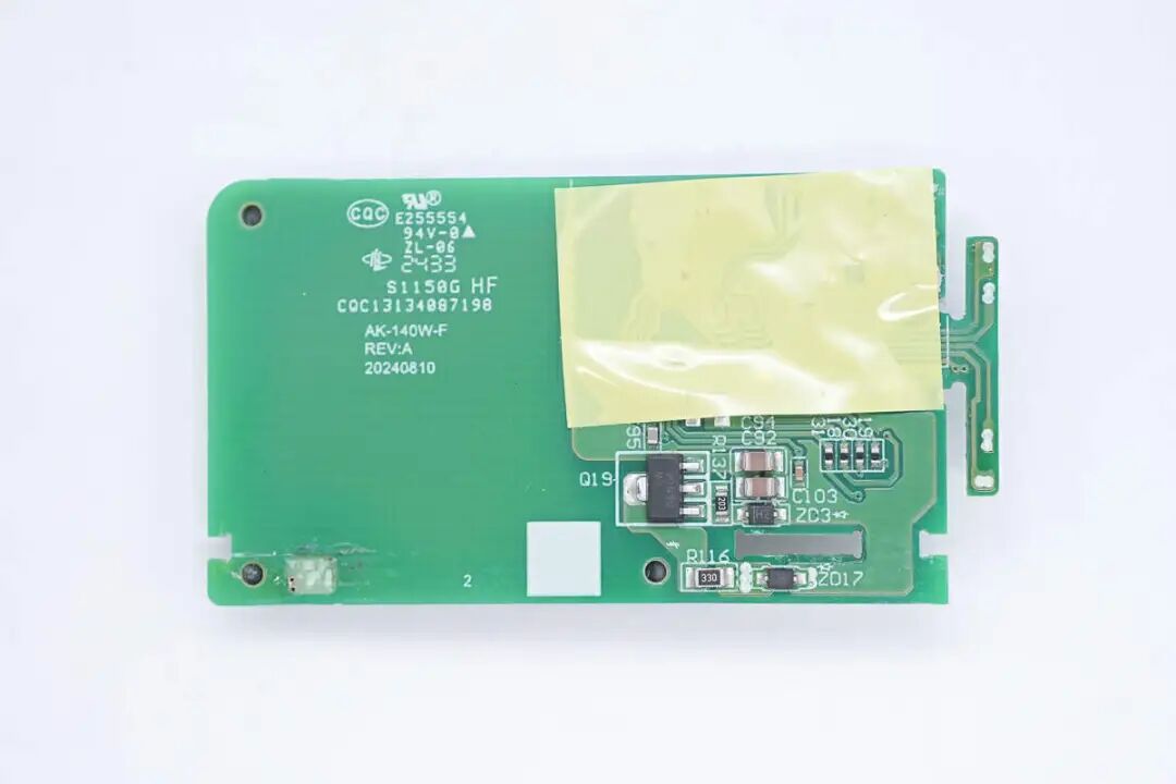 背面設(shè)有穩(wěn)壓管,對應(yīng)變壓器區(qū)域貼有絕緣膠帶。