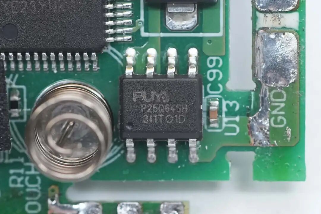 存儲器來自Puya普冉,型號為P25Q64SH,采用SOP-8封裝,為屏幕控制提供信息存儲。