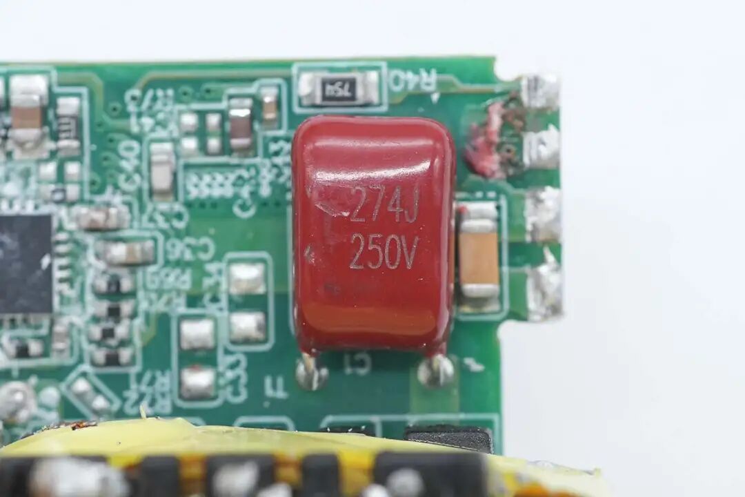 兩顆薄膜濾波電容相同,規(guī)格為1μF450V。