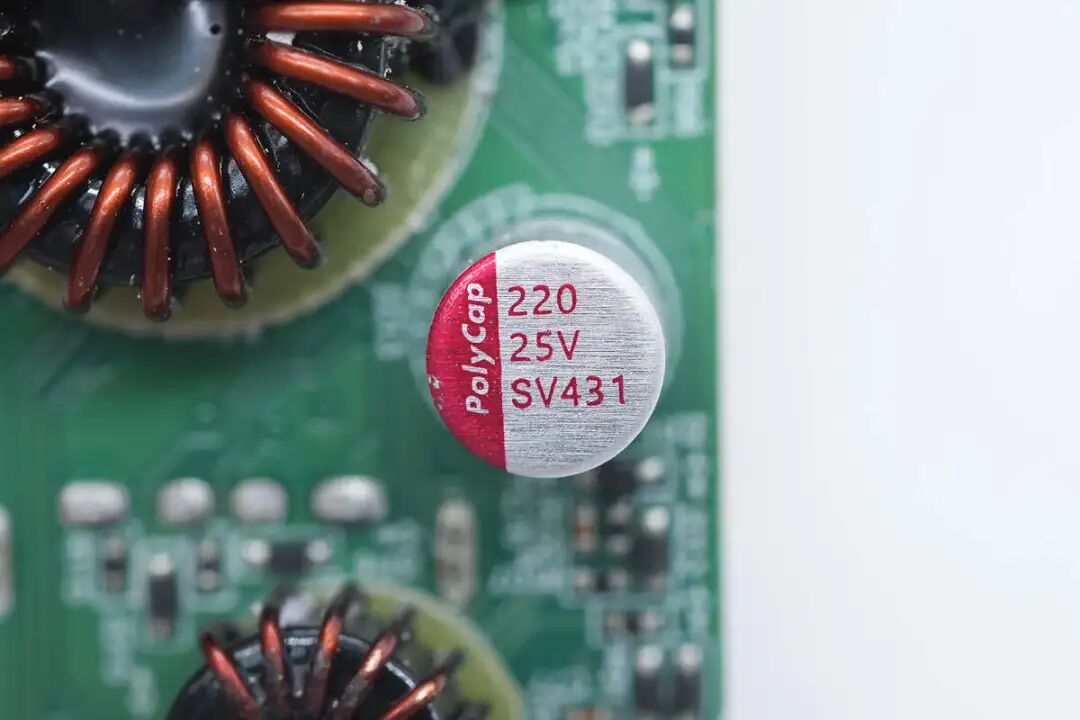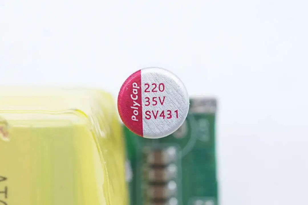 輸出濾波固態(tài)電容來自PolyCap柏瑞凱,規(guī)格為35V220μF。