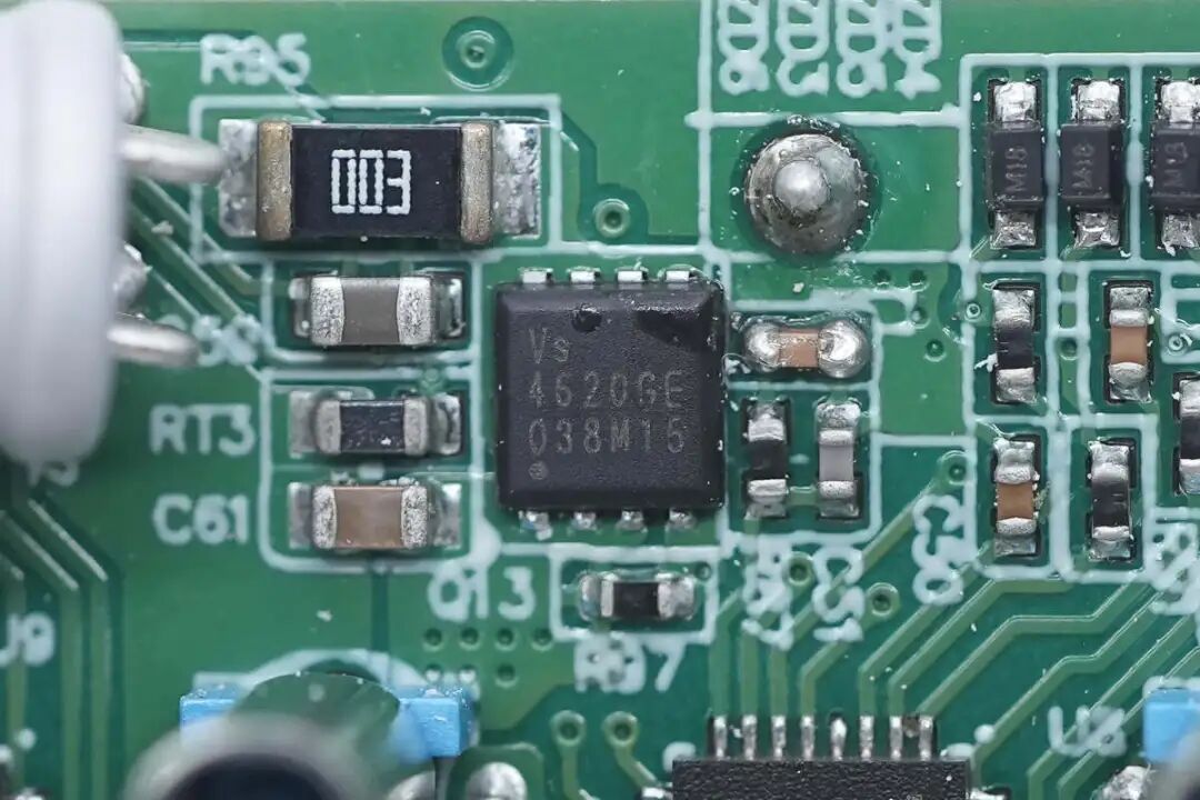 兩顆同步降壓開關(guān)管采用威兆半導(dǎo)體VS4620GEMC。