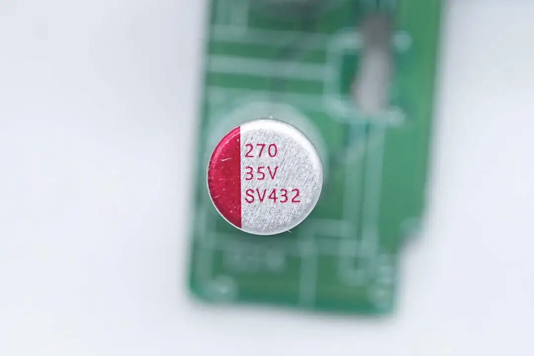 另一顆輸出濾波固態(tài)電容來自柏瑞凱,規(guī)格為25V220μF。